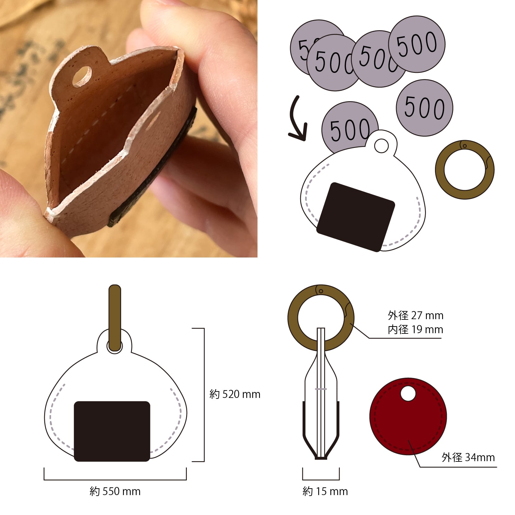 おにぎり型のバッグチャーム
