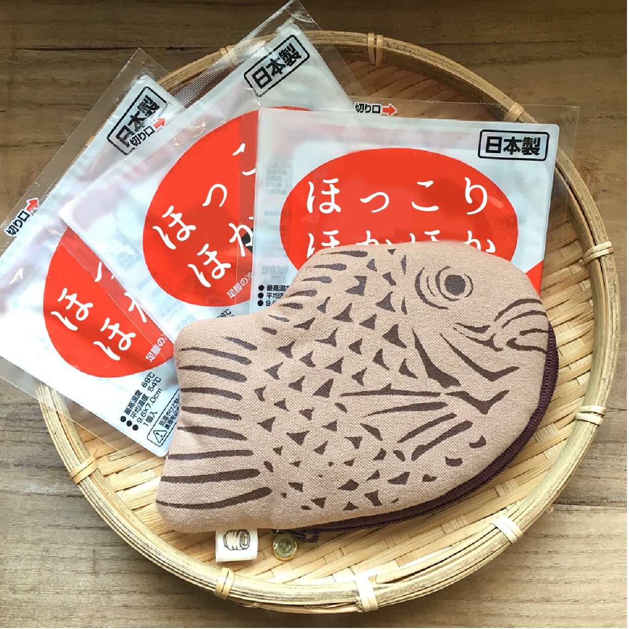 こちらは、『ほっこり鯛焼きポーチ(ミニカイロ5個付)』