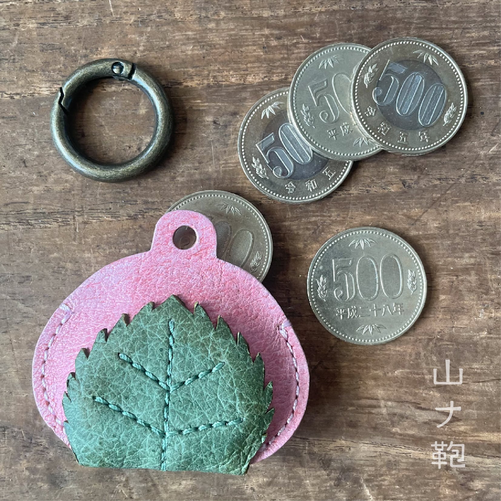 タンニン鞣しの国産豚革に、桜餅色を手染めし