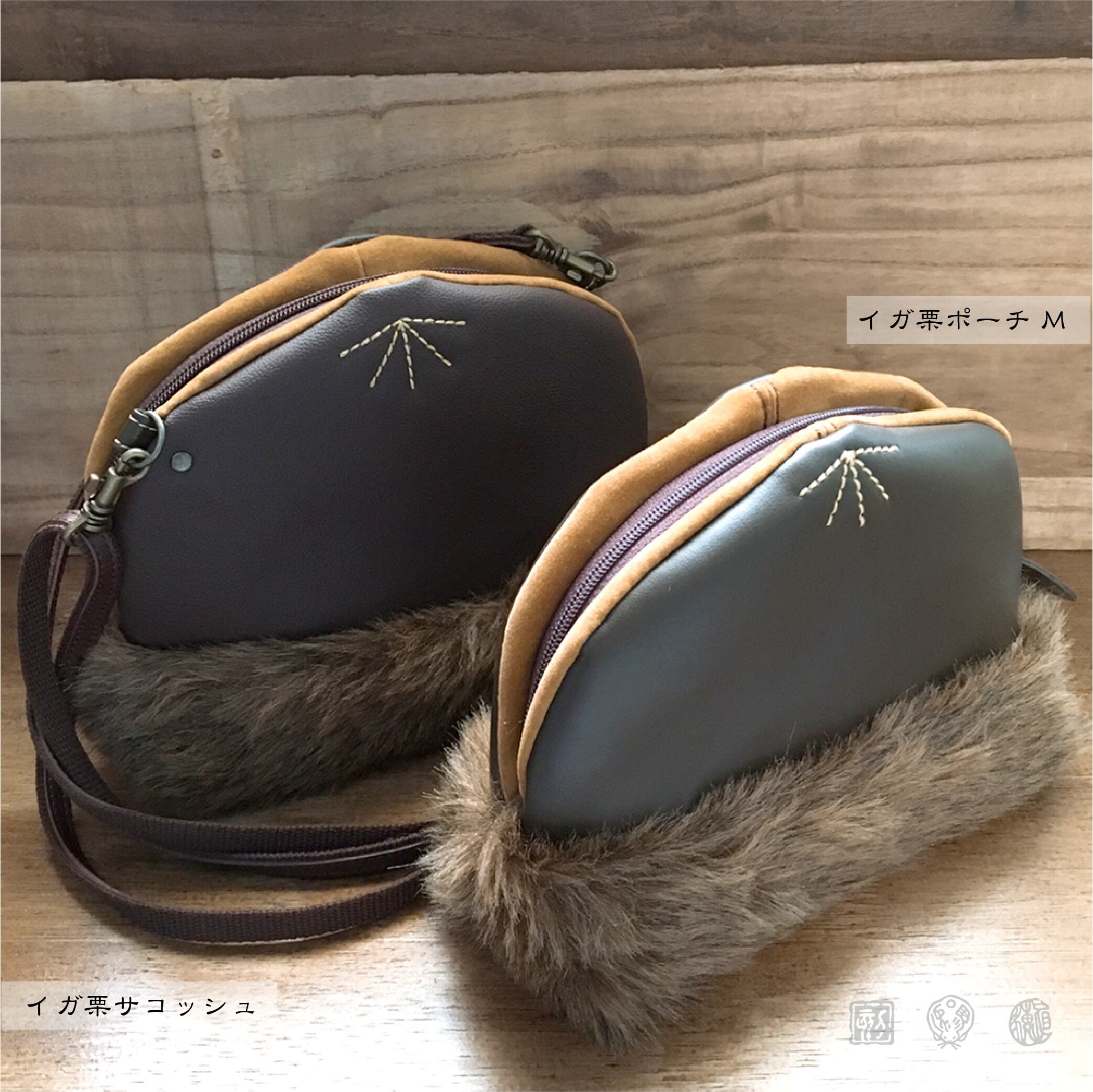 イガ(フェイクファー)、渋皮(鬼皮を剥くと出てくる薄い皮/布)と、